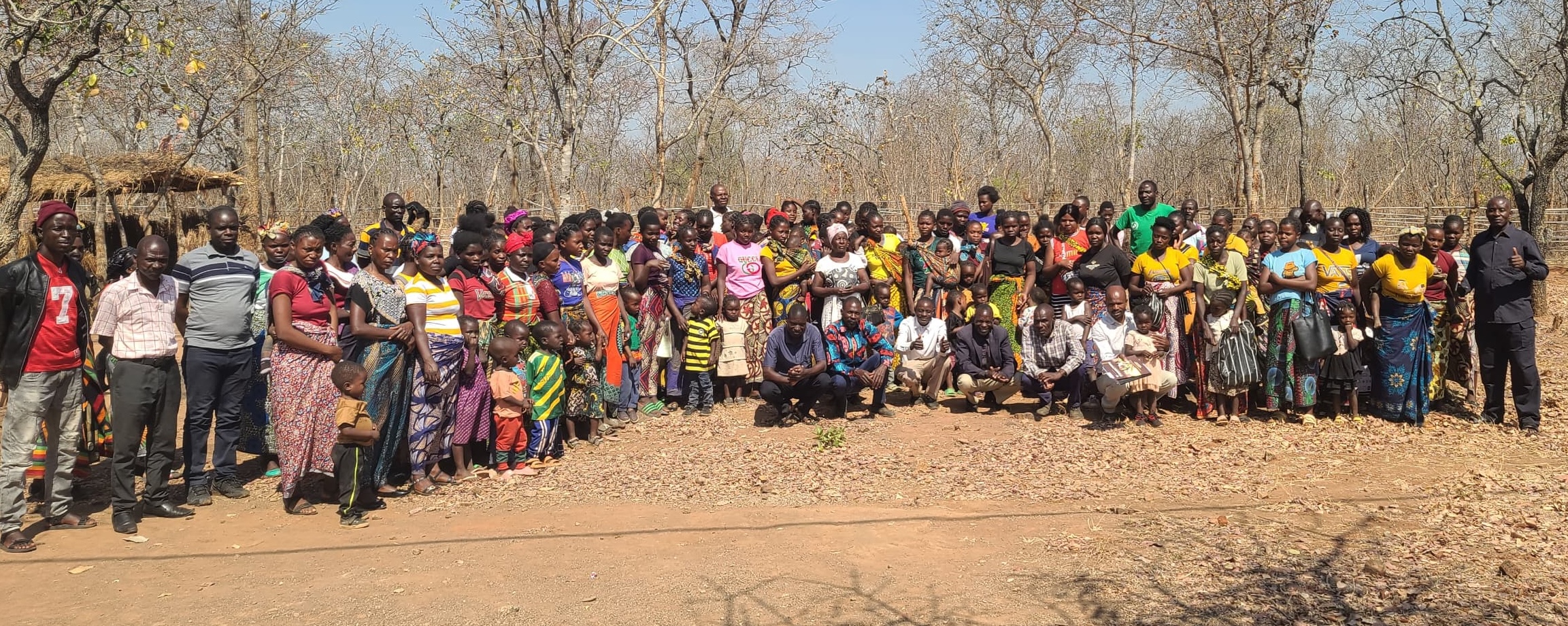 Deelnemers aan de voorlichting en voedseldistributie dag begin oktober 2025, Mishore village Zambia