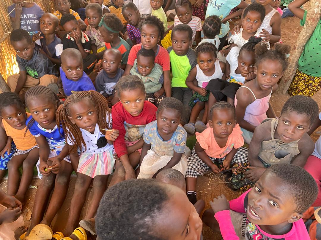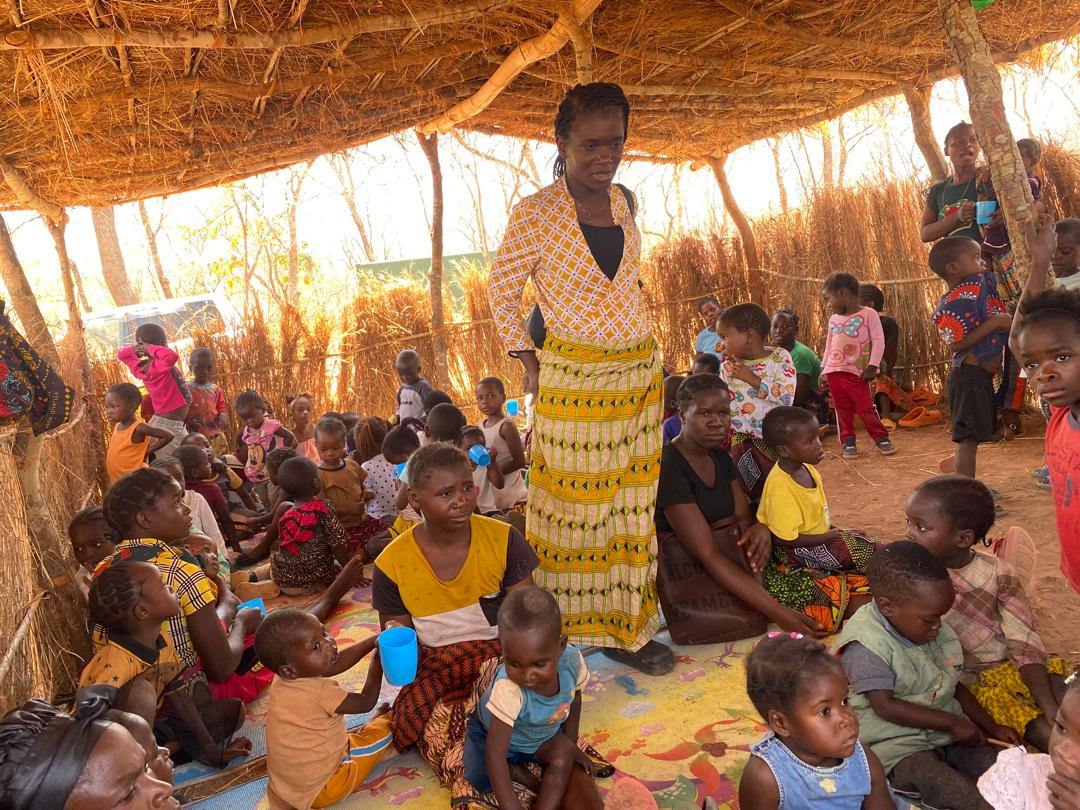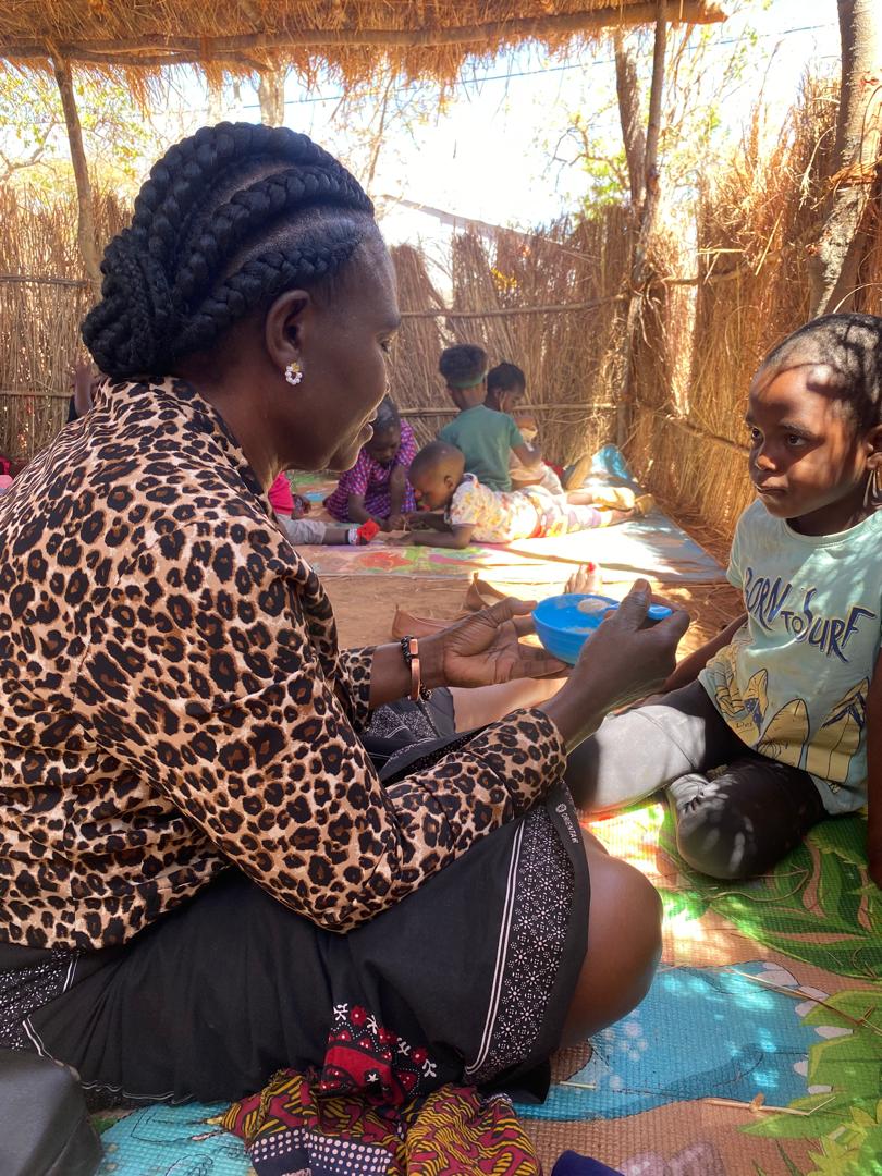 While mothers attended their workshop, a dedicated team consisting of Mrs. Lupili, Mrs. Jere, Mrs. Chanda, and Simon expertly managed the large group of children. They organized them into smaller, age-appropriate groups for structured play and activities, ensuring a safe and engaging environment.