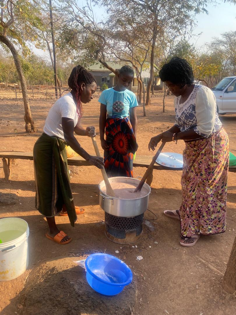 - Mrs. Lupili demonstrated a new soya and millet mix porridge.